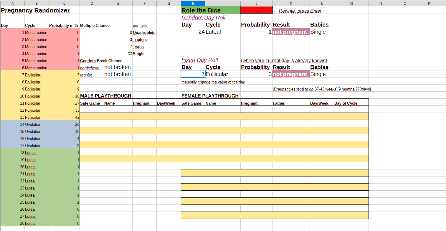 I tried for a while to find a useful randomizer for pregnancy chances, preferably with changable values. I didn't find anything useful.